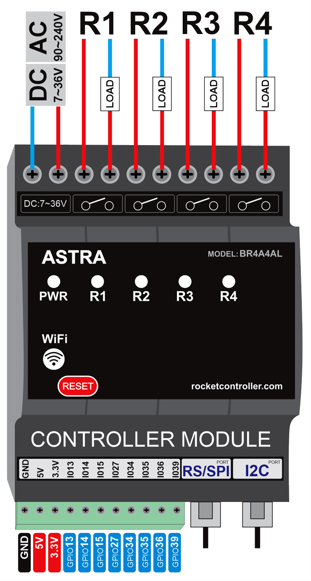 - Connect power through a circuit breaker up to 5A (controller consumes max 0.8A for 90~240VAC and 1A for 7~36VDC)