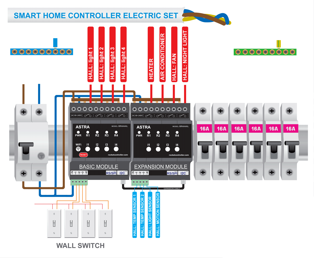 The ASTRA controller is designed for mounting in standard electrical enclosures on DIN rails. The device installs alongside circuit breakers (fuses). The controller's front panel matches standard protective cover window dimensions — after installation, all connected wires will be hidden while LED indicators and RESET button remain accessible.